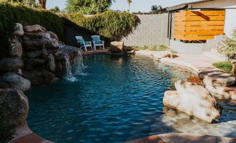 Our home boasts a beautiful backyard with resort style pool, BBQ grill, fire pit, ample seating and an atmosphere that will have you thinking your in a tropical paradise rather than the Arizona desert. We’d be thrilled if you and yours stayed at our home.