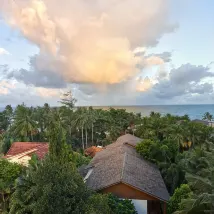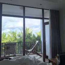 가든뷰는 방갈로 스타일인데 수영장 및 해변이 바로 앞에 있다는 장점이 있지만 습기 때문에 눅눅하고 냄새가 나요. 모기도 있고요. 오션뷰는 복층건물에 있어 습하지 않아 좋았어요. 뷰는 사진과 같아요.
