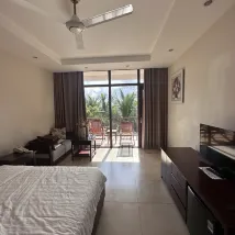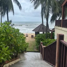 제가 꿈꾸던 리조트예요. 바로 앞에 해변과 바다가 펼쳐져 있고, 킹콩 슈퍼마켓에서 약 700m 떨어져 있어 위치도 정말 좋습니다. 저희는 1층에 묵었는데 수압도 최고였어요. 호텔 수영장은 넓었지만, 비가 와서 수영은 못 했어요. 객실도 꽤 넓어서 3~4명이 묵기에 충분했어요. 이불과 수건은 깨끗했고, 세탁 세제 냄새까지 났어요.
