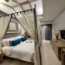 아름답고 아늑한 리조트입니다. 일부 객실은 현재 리노베이션 공사 중이에요. 수영장 이용도 편리해서 정말 만족스러웠어요. 다만 발코니 지붕에 물이 살짝 새긴 하지만 괜찮아요. 지금 푸켓은 우기라서요. 다음에 푸켓에 가면 꼭 다시 방문하고 싶어요. 카론 비치에서 걸어서 10분 정도 거리인데, 저희는 자전거를 빌려서 3분 정도 걸렸어요.