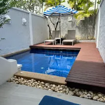 에어컨 소음 문제만 해결된다면 5점 만점에 5점을 줄 수 있는 호텔입니다. 새벽 12시에 호텔에 도착했는데, 에어컨 소리가 너무 커서 당장 다른 호텔로 옮기고 싶을 정도였어요. 다행히 귀마개를 챙겨가서 괜찮았습니다. 객실이 수영장과 바로 연결되어 있어서 매우 편리했습니다. 낮에는 호텔이 아주 조용해서 수영장을 거의 전세 낸 듯 이용할 수 있었어요. 카론 비치에서도 멀지 않고, 호텔 입구에 있는 'Sweet Lemongrass' 마사지샵은 정말 강력 추천합니다. 조용하고 편안한 분위기에서 마사지를 받으니 몸이 아주 개운했습니다. 호텔 옆에서는 가장 저렴한 두리안(1kg에 89바트)과 코코넛(개당 25바트)을 살 수 있었고, 조식으로 나오는 오믈렛도 정말 맛있었어요. 전반적으로 좋은 경험이었지만, 에어컨 소음이 크다는 점이 아쉬웠습니다. 혹시 이곳에 숙박하실 분들은 꼭 귀마개를 챙겨가시길 바랍니다!