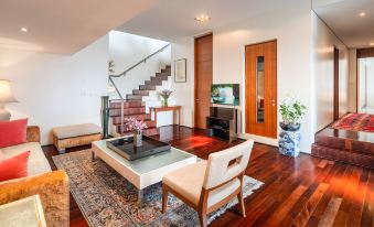 또한, 빌라에는 바비큐, 정원, 도서관 등의 시설도 있습니다. 보다 편안하게 지내실 수 있도록 환전 서비스, 짐 보관 서비스, 드라이 클리닝 및 세탁 서비스도 숙소에 준비되어 있습니다.