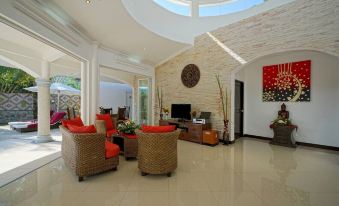 You can reach both the beaches in just five minutes by scooter or car. You can rent a car directly from us or use our inexpensive shuttle service. In both the places you will find restaurants, bars, shops, and markets. The beach area is one of the best and quietest on the island. The villa has a large living area which goes directly in to the spacious covered patio. The tropical garden with sala and the built-in pool are an oasis of calm.