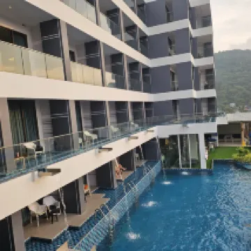 괜찮은 호텔이에요. 객실에는 필요한 모든 편의 시설이 갖추어져 있습니다. 사전 예약 시 카타 비치로 이동 가능합니다. 직원들이 친절합니다. 산 위에 위치해 있어서 걷기가 어렵습니다. 그 지역은 조용해서, 모페드 소음이 방해가 되지 않았습니다. 산의 풍경은 이렇습니다.