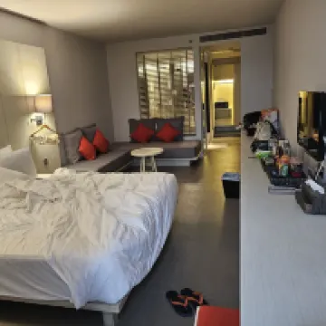 체크인할 때 직원이 무료 음료를 가져왔는데, 매우 상쾌했고 포도주스 같았습니다. 객실은 넓고, 호텔 아침 식사는 매우 맛있습니다. 그리고 아침 식사 공간에 수영장이 있어서 낮 동안 여유롭게 수영을 즐길 수 있습니다. 호텔은 카타 비치와 매우 가깝고, 카타 비치까지 셔틀버스가 운행됩니다.