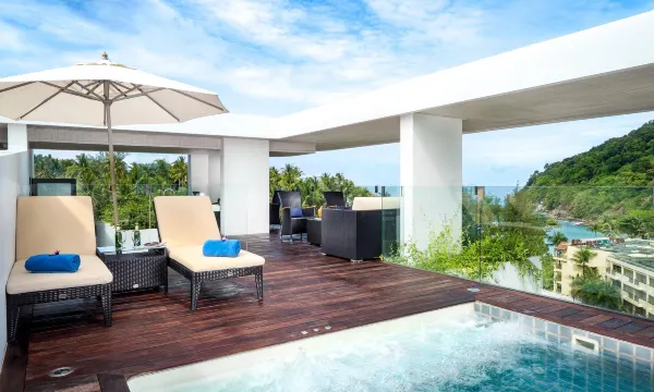 We booked the studio with private pool and sea view. We were quite surprised and disappointed that the pool is not actually connected to your room. It is a private pool and not a far walk, but it is not connected and not so private. You can look over into the neighbours pool or room from the balcony. Also, we had no hot water the first day and had to wait until after 11 for the water to be repaired because the person who could fix it wasn’t in until after 10. The hotel itself is okay, facilities were fine (in the self catering there is nothing, so if you plan on using it you’ll need to get everything (salt, pepper, cooking oil, etc…)). The hotel is quite far from pretty much anything so unless you have a car or motorbike you’ll need to take a taxi or shuttle each way (anywhere from 250 to 400 baht each way). There is a shuttle offered, but it is 75 per person, 3 times a day. Overall it isn’t a bad place and it is away from everything if that’s what you’re looking for, but it is definitely not walking distance to restaurants, bars or other things. Merlin beach is close which is nice and a 5 minute walk. I would probably not book again as there were so many issues in the beginning (hot water, pool is not connected, far from town and gets expensive going back and forth).