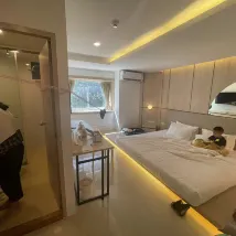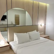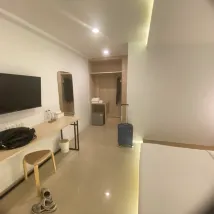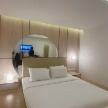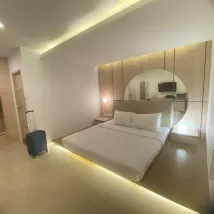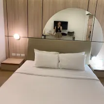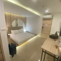 4층에 있는 미니멀리스트 스타일의 객실입니다. 방은 넓고 깨끗하지만 에어컨이 시원하지 않습니다. 두 시간 자고 나서도 여전히 덥습니다. 직원에게 전화해서 기술자를 불러서 벌집을 꺼내달라고 했습니다. 한 시간 더 자고 나서도 여전히 덥습니다. 다시 전화했더니 직원이 2층으로 내려가라고 했습니다. 방은 4층보다 작아서 짐을 직접 들고 내려가야 했습니다. 4층 객실 가격은 넓은데, 2층으로 내려가면 방이 더 작아지겠지만, 직원이 가격을 언급하지 않아서 가격은 아마 비슷할 겁니다.