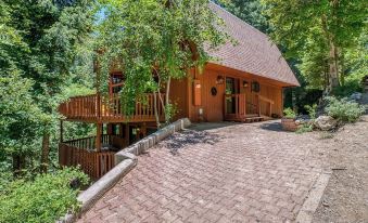 Large wrap around decks on the two main levels and mini decks off each side of the loft allow for great views among the trees.
