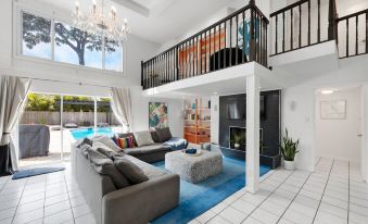 With a modern minimalist design, our spacious home boasts a newly renovated kitchen, drinks station, games room, and a decadent backyard featuring a pool, cabana, fire pit lounge area, and outdoor dining for 8. Our open-plan living spaces, including two family rooms, a mezzanine, dining room, and games room, are perfect for entertaining loved ones.