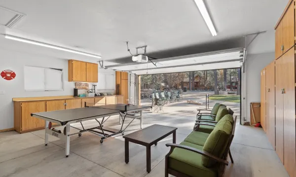 In the garage is a GAME ROOM that includes a PING PONG TABLE, a GOLDEN TEE arcade game, and an additional arcade game that has 10,000 games to choose from! 4 adult and 2 kid bikes with helmets for you to enjoy.