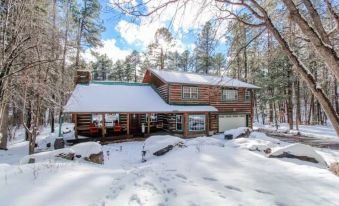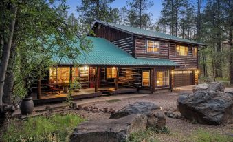 Welcome to our 4,100 square foot Luxury Log Cabin nestled in the breathtaking beauty of Pinetop-Lakeside. Located on the banks of a serene creek in the heart of a lush forest, our log cabin promises an unforgettable experience for up to 18 guests, with 2 ensuites for multi-family comfort.