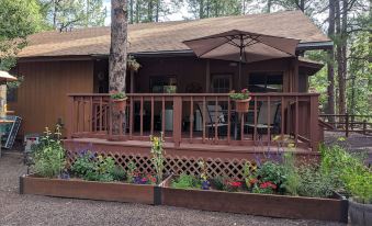 Nestled in Pinetop Lakes Country Club, this delightful cabin offers a superb retreat for guests. With 2 cozy bedrooms featuring a Master Bedroom with King Bed and Second Bedroom with Queen Bed, along with 2 full bathrooms. This cabin provides a great blend of comfort and convenience including a full kitchen with pots, pans, dishes, utensils and regular and Keurig coffee makers with coffee included. The living room space with a comfy futon bed adds to the charm of this phenomenal property. A 220v/20amp EV charging outlet is ofers easy access to the first parking space. Both front and back covered porches offer fresh air relaxation as you watch the birds and squirrels play in the yard. We hope you'll enjoy your stay at our cabin.About pets:Pets allowed: dogs and cats less than 50 lbs per pet (limit 2 pets total).Pets are welcome but you must clean up after pets.About children:Children allowed: ages 0-17.About smoking:Smoking is not permitted.About events:No events allowed.