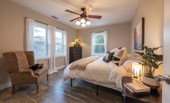 Upper Level: The charm continues upstairs with a loft-style open bedroom featuring two twin beds. This cozy space offers a quiet retreat within the home.