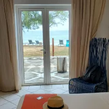 The hotel is situated on a small ***** of beach, and my room looked out at this beautiful view. The bed was comfortable, and the room was okay. The door locking mechanism took some getting used to.