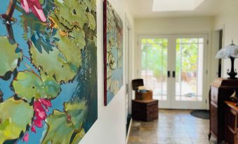 - As you walk through the doors to the grand entrance hall, you will see your unit #1 or the Orchid Suite, on the right hand side. The hall space is shared with our other suite, the Taro Suite #2.