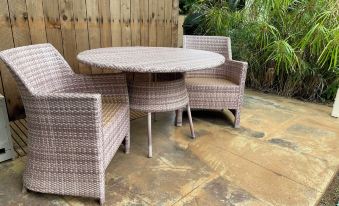 - As you exit through the sliding glass doors, you will have your own private lanai with table and two chairs, as well as a couple boogie boards for your enjoyment. If you go left on the path, you will see the washer and dryer in our shared laundry room.