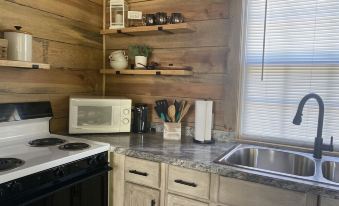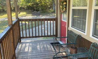 The cleanest little cabin I have ever stayed in! The decor is absolutely charming. Quiet and beautiful location. Every little detail was thought of. Towels were large and luxurious, water pressure was great and the detachable shower head was very much appreciated. Kitchen was fully stocked with all pots and pans and utensils you could want (maybe could suggest adding a crock pot) games, movies, two televisions. Two mini-split AC units was wonderful and kept us nice and cool. Pre-cut fire wood was available and the fire pit was ready to use with logs and kindling already set up. Bring your own lawn chairs if you need them (2 chairs on porch were available) cabin has stairs but no ramp just as an fyi for anyone needing assistance. No surprises- The pictures online are great and the cabin really is just as cute in person. Cannot say enough about how wonderful our stay was!