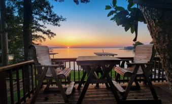 CCSunset Cottage is an ideal place for photographers looking for a great sunset view or bird spotting, and a perfect place for a single-family or couples who like to spend time outdoors either on the large deck, dock, patio, or yard doing activities with friends or family. We provide a couple of yard games, a lily pad, kayaks, and a Paddle Board, you provide the fun. The house is located in a deep water area and is great for fishing. Catfish will hang around the dock and will appreciate it if you feed them some catfish food around dust.