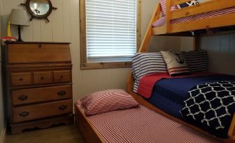 - There are sleeping accommodations for 7 with 2 queen beds and a 3-level bunk bed spread out amongst the 3 bedrooms (Top Bunk Bed for Kids only).
