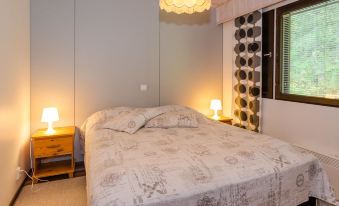 Wooden cabin 1995, surfaces renovated 2013, living-room/kitchen with convertible sofa, bedroom with double bed , bedroom with 2 beds, dressing room, washing room, sauna, open veranda.