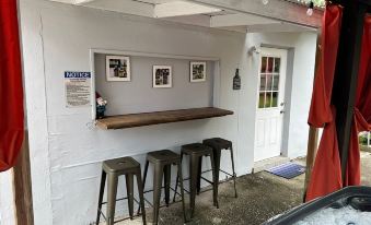 Hot tub, patio lights, water feature off and on. No outlet in bathroom. Heating system not consistent. Dogs barking next door. Otherwise all good.