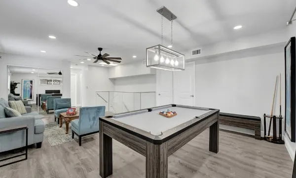 Inside, enjoy two expansive living areas, with one doubling as a game room featuring a pool table. The fully equipped modern kitchen provides everything you need for meals and gatherings. Four of the six bedrooms are extra-large, ensuring space and privacy for everyone.