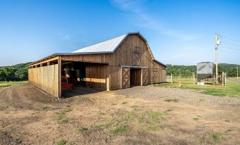 Cozy apartment inside a newly built hay barn made from reclaimed wood from a 100 year old barn. Views of our farm are spectacular as well as the fresh farm air and peaceful atmosphere. We have 3 bedrooms (1 is detached), 1 bathroom and a sleeper sofa. Central heat and air, Wi-Fi, and big screen TV.About pets:No pets allowed.About checkOut:Check out before 11:00 AM.About children:Children allowed: ages 0-17.About checkIn:Check in after 4:00 PM.About smoking:Smoking is not permitted.About minBookingAge:Minimum age to rent: 18.About events:No events allowed.