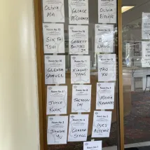 리셉션 데스크에서 객실 번호를 찾아 체크인하세요.