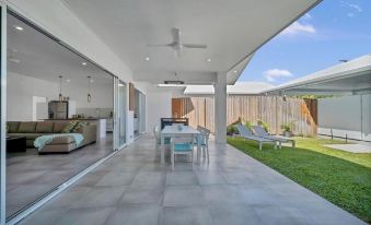 The house has large sliding doors and louvres so the ocean breeze can flow through the entire property. The living area and kitchen also open up to an undercover alfresco dining area overlooking the swimming pool. The house has ceiling fans throughout and is fully air-conditioned.