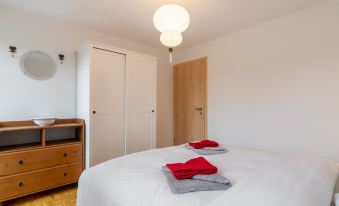 Large resort "Residenz Marina". On the outskirts, 300 m from the centre of Le Bouveret, in a quiet, sunny position, 200 m from the lake, 50 m from the canal. In the house: central heating system. Shop, grocery 800 m, restaurant, bakery 500 m, bicycle rental 190 m, bus stop "Bouveret village" 1.2 km, railway station "Le Bouveret" 300 m, pebble beach 200 m, outdoor swimming pool 300 m, indoor swimming pool 7.2 km, thermal baths 30 km, public bathing area 300 m, bathing lake "Léman" 300 m. Sports harbour 200 m, golf course (18 hole) 15 km, surf school 200 m, tennis, minigolf 12 km, walking paths from the house 300 m, mountain railway 15 km, slopes 18 km, ski school 18 km, children's ski school 35 km, sled run 29 km, cross country ski track 35 km, ice rink 18 km. Nearby attractions: Parc Aventure 17 km, Château Chillon / Fort de Chillon, Swiss Vapeur Parc 100 m, Aqua Parc 500 m. Well-known ski regions can easily be reached: Les Portes du Soleil 18 km, Villars 35 km, Leysin 31 km. Well-known lakes can easily be reached: Lac Léman. Hiking paths: Portes du Soleil. The keys‘ handover takes place by the agency Interhome in Bouveret. Neighbourhood highly sensitive to noise. Quietness and good behaviour expected. "Tasman 15/R", 3-room apartment 89 m2 on 2 levels. Spacious, comfortable and tasteful furnishings: living/dining room with dining nook and TV. Exit to the terrace. Open kitchen (dishwasher, 4 ceramic glass hob hotplates, toaster, kettle, microwave, freezer, electric coffee machine, Capsules for coffee machine (Nespresso) extra). Sep. WC. Upper floor: 1 room with 1 double bed (150 cm, length 200 cm). 1 room with 3 beds (90 cm, length 190 cm). Bath/WC. Terrace. Balcony furniture. Very beautiful view of the mountains, the countryside and the canal. Facilities: washing machine, dryer. Internet (WiFi, free). Parking space n 127. Please note: non-smokers only.