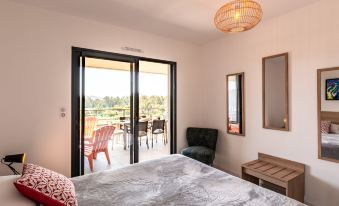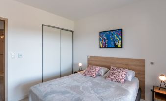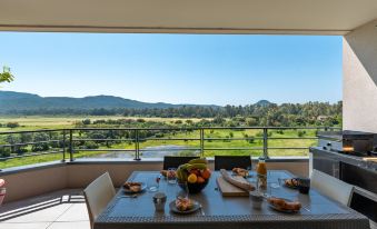 Beautiful residence "Stanatura", 5 storeys, built in 2020. 50 apartments in the residence. On the outskirts, 600 m from the centre of Porto Vecchio, 2 km from the sea, 6 km from the beach. In the complex: lift. Parking. Shop, grocery 50 m, supermarket 1 km, restaurant 200 m, bakery 1 km, bus stop 140 m, sandy beach "Palombaggia" 6 km. Sports harbour 2 km, golf course (9 hole) 7 km, riding stable 2 km. Nearby attractions: Figari 18 km, Bonifacio 26 km, Solenzara 39 km, Iles Lavezzi. Well-known lakes can easily be reached: Lac de l'Ospedale. Please note: car recommended. Heliport nearby. 3-room apartment 72 m2 on 5th floor. Very beautiful and modern furnishings: living/dining room with 1 double sofabed (160 cm, length 200 cm), TV (flat screen). Exit to the terrace. 1 room with 1 french bed (160 cm, length 200 cm). Exit to the terrace. 1 room with 2 beds (90 cm, length 190 cm). Open kitchen (oven, dishwasher, 4 induction hot plates, toaster, kettle, microwave, freezer, electric coffee machine). Shower/WC. Electric heating, air-conditioning. Terrace 25 m2. Terrace furniture. Beautiful view of the mountains. Facilities: washing machine, dryer. Internet (WiFi, free). Parking. Please note: suitable for families. Non-smokers only. Smoke alarm. Plancha. Wine cellar. 2A247000320EC