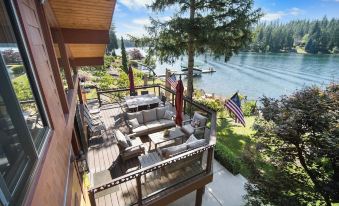 Whether you're gathered around the large dining table for a meal, playing games in one of the cozy living spaces, or stepping outside to enjoy the spacious deck with lounge seating, this home is made for connection. Enjoy morning coffee or evening conversation while watching the fun on the water from the deck, or gather the whole family around the outdoor dining table for a meal al fresco.