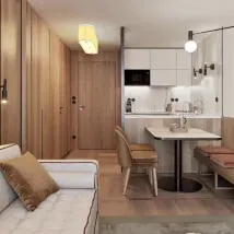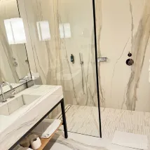 객실은 매우 새롭고, 가구와 시설이 매우 좋으며, 인덕션 쿠커, 주전자, 캡슐 커피 머신, 식기 세척기와 모든 식기류가 갖춰진 작은 주방이 있어 간단한 아침 식사를 만들기 편리합니다. 하지만 스위트룸 이용률이 낮아서 그런지 방에서 약간 곰팡이 냄새가 납니다.