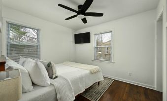 Was in town for a full week working and seeing friends/family. The house is in great shape. Excellent kitchen with plenty of fridge space. Very nice bathroom with double vanity. The beds were actually comfortable. Backyard was a bit muddy for the dogs, but it was just a rainy week. We would definitely come back.