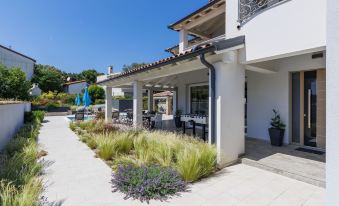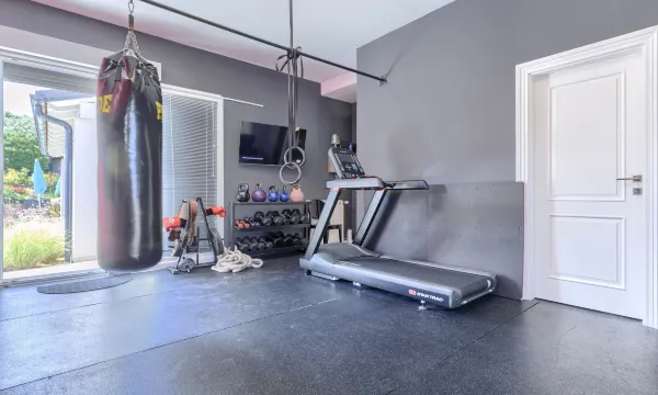 Premantura 11 km from Pula: Beautiful villa "Dream house", 2 storeys, built in 2019. 250 m from the centre of Premantura, in a sunny position, 500 m from the sea, 500 m from the beach. Private: property 950 m2 (fenced), small garden with wildlife garden, swimming pool heated (36 m2, depth 140 cm, seasonal availability: 25.Apr. - 03.Oct.) with internal staircase. Unconventional pool shape. Outdoor shower, garden furniture, barbecue. In the house: internet access, fitness room, billiard table, table football, central heating system, air conditioning, washing machine. Cook on request (extra). Parking (for 6 cars) at the house on the premises. Shop 250 m, supermarket 4.5 km, restaurant 150 m, bus stop 400 m, pebble beach 2.5 km, rocky beach 500 m. Surf school 2.5 km, tennis 750 m, riding stable 10 km, walking paths from the house 20 m, cycle lane 25 m. Nearby attractions: Nature park Kamenjak 650 m. On request: airport transfer to the holiday accommodation. Swimming pool heated (extra). It is necessary to announce 7 days in advance if the pool heating is required. Fitness room with shower/WC and exit to the garden (included). Possibility of excursions and transfer to the airport (all on request, extra). By groups of young people double deposit is requested on arrival. 5-room villa 280 m2 on 2 levels. Living/dining room with satellite TV (flat screen). Exit to the terrace. 1 room with 1 french bed (160 cm, length 200 cm), shower/WC and satellite TV (flat screen). Open kitchen (oven, dishwasher, 4 ceramic glass hob hotplates, microwave, freezer, electric coffee machine). Upper floor: 1 room with 1 french bed (180 cm, length 200 cm), shower/WC and satellite TV (flat screen). Exit to the terrace. 1 room with 1 french bed (180 cm, length 200 cm), shower/WC and satellite TV (flat screen). Exit to the terrace. 1 room with 1 french bed (180 cm, length 200 cm), shower/WC and satellite TV (flat screen). Exit to the terrace. Terrace 50 m2, roofed, terrace 6 m2, roofed. Terrace furniture, deck chairs. View of the swimming pool and the resort. Facilities: children's high chair, baby cot, hair dryer. Internet (WiFi, free). Terrace (25 m2, roofed), terrace (20 m2, roofed).