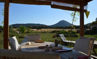 Private garden of 3000 m2 with organic orchard. Fully unobstructed view of the Sulcis-Iglesiente mountains.