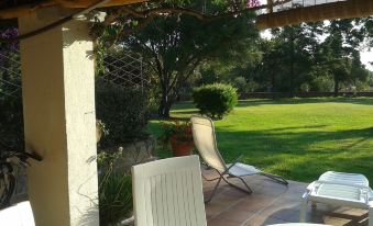 The cottage (for 4-6 people) consists of two bedrooms, a large living room (35sqm) with kitchenette and two sofa beds, bathroom with shower and washing machine. Outside a large veranda, with a glimpse of the sea, fully furnished and surrounded by the garden. Inside the village, for guests, there are two tennis courts (for a fee), a small bar restaurant and about 300m. restaurant overlooking Tavolara, a service center for assistance and excursion organizations and private parking.
