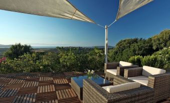 Dalla veranda si gode dello splendido panorama del mare, in direzione nord, fino alle coste della Corsica.