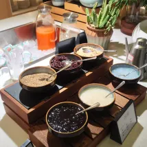 음료 구역에는 다양한 요구에 맞는 우유 등의 옵션이 제공됩니다. 풍부한 건조 곡물과 함께 마시면 달콤한 음료를 원하든, 건강한 조합을 만들고 싶든 쉽게 달성할 수 있습니다. 🍼