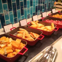 죽과 디저트 코너도 훌륭해요! 흰 죽은 부드럽고 섬세하며, 캐서롤 디저트에는 망고, 타로볼 및 기타 재료가 들어 있습니다. 또한 시리얼, 아이스 젤리 등이 작은 그릇에 담겨 나오는데, 종류가 다양할 뿐만 아니라 보기에도 아름답습니다.