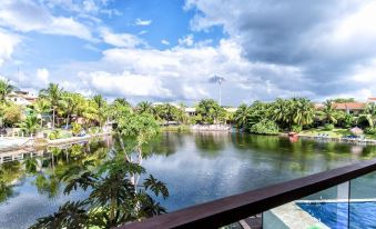 Our family filmed an episode for "Mexico Life" in 2016 and it has been featured several times throughout the year. Our very large 3 bedroom/ 2 bath condo is located on a gorgeous lagoon of Puerto Aventuras and only steps away from the beach. The windows in the master bedroom and living room span from floor to ceiling with a breathtaking view. The condo sleeps 7 people with a king bed in the master bedroom, a queen in the 2nd bedroom and twin beds in the 3rd. There is an additional full size inflatable bed. A full size washer and dryer are included for your convenience. Enjoy a cup of coffee on the balcony to start off your morning overlooking the lagoon, or a glass of wine during the sunsets. If you're not at the beach (only 250 feet away), you can cool off in the pool that is located right off the balcony. Take a Kayak or paddle board for a cruise on the lagoon or just hang out on the inner tube. Great snorkeling is just 10 steps away and you'll see tons of colorful fish. A golf cart is available to cruise around the community. Also, Puerto Aventuras is a great town to explore by golf cart. We will have a golf cart available for rent to our tenants. The rental amount per day will be 25usd which is below the standard 50 to 70usd per day you will pay in Puerto. There is so much to do like swimming with the dolphins, golfing, tennis, spa, shopping, fishing, parasailing, scuba diving, snorkeling and so much more. There are dozens of delicious restaurants to choose from. You can listen to live music every night. Our condominium in Puerto Aventuras is a great way to wind down and relax.