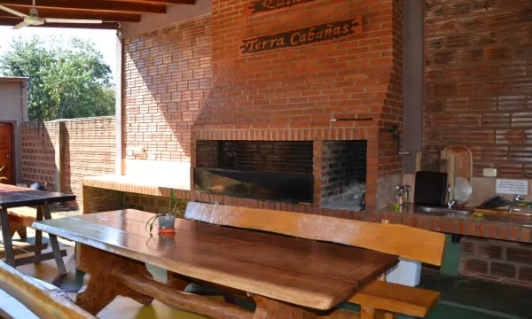 Las cabañas son cómodas todos los ambientes con aire acondicionado. Atención excelente. El quincho es grande con ventiladores de techo, parrilla freezer television y mesas de maderas macizas con bancos hasta tiene para cocinar al disco con garrafa. Fuimos 8 personas y la pasamos muy bien. A pesar de que nos toco dias lluviosos. Muy recomendable.