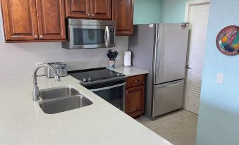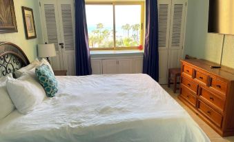 This condo is large (1150 sq ft) and features spectacular views. It features two large private bedrooms in a split-master arrangement, each with a California King size bed plus a convertible sofa-bed in the living room. It is set up to accommodate up to 6 comfortably. The primary master bedroom has an en suite full bathroom with walk-in shower as well as a view of the ocean. The second bedroom is almost as nice as it is also large and located right next to the second full bathroom that features a walk in shower. The condo has a full kitchen with fridge, microwave, dishwasher, oven/stove; and a laundry room with washer and dryer. Want to chill and watch a movie? There are flat screen TVs in the Living Room and bedrooms and Netflix is live! Need to stay connected? There is a very good Internet service with a dedicated router and WiFi right in the condo. Yes, you can stream a movie! Recent renovations include a full kitchen re-do, all new appliances including washer/dryer, new LED lighting, new fans throughout including the patio/deck, new living room furniture, new beds, stronger WiFi router, Charging ports for devices, etc. Door access is by a personal door lock code so there are no keys to manage, distribute, carry around, and lose...which also increases security since keys cannot be copied.