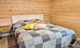 The cabin features two bedrooms, one on the ground floor and another on the upper floor, both furnished with double beds. The living room/kitchen includes a sofa bed that accommodates two guests. Additionally, the loft has a 140 cm wide mattress. However, the cabin is rented out for a maximum of 6 guests. The wood-heated sauna provides a soothing and relaxing steam experience. The dressing room includes a WC and a washing machine.