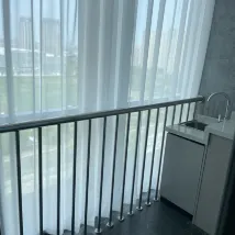 방은 넓고 모든 시설이 매우 좋습니다. 욕실에는 따뜻한 공기도 있고, 세탁물을 걸어두면 밤새 건조될 수 있습니다. 발코니도 엄청 크네요.