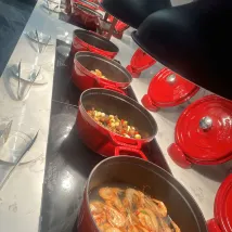 6) 오믈렛 담당 아저씨가 계란 여러 개를 연달아 튀겨서 계란 틀에 달라붙더니 결국 오믈렛을 스크램블 에그로 만들어 줬어요.