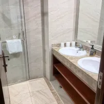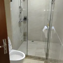 호텔은 매우 편안한 침대와 적절한 벽과 나무 문으로 구분된 멋진 욕실이 있는 아름다운 인테리어를 갖추고 있습니다. 길 건너편에 있는 산과 다른 아파트의 멋진 전망. 변기가 막혀서 작은 문제가 있었지만, 그들은 빠르게 문제를 해결했습니다.