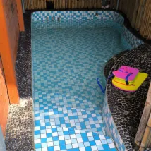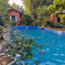 중앙에는 수영장이 딸린 마당이 있고 나머지 6채는 3층짜리 건물로 방이 많다. 병원 내부 환경은 꽤 좋습니다. 마을로 들어가는 길을 따라 신축 및 개조 공사 중인 B&B가 많이 있습니다. 지하 온천을 펌핑한다고 프런트에서 들었습니다. 제가 살고 있는 단독주택은 아주 새롭습니다. 어린이가 있는 가족을 위해 설계되었습니다. 일부 작은 세부 사항을 개선할 수 있습니다. 몸을 담글 수 있는 수영장이 꽤 넓습니다. 그 안에는 6개의 캐빈이 있습니다. 수영장의 절반은 캐빈으로 둘러싸여 있지 않으므로 프라이버시가 충분히 높지 않습니다. 복도에 절반 높이의 바 도어를 추가하면 더 좋을 것입니다. 이모님이 아침식사를 해주셨는데요. 죽, 국수, 계란, 튀긴 반죽, 야채 등이 별로 맛이 없었고 맛도 괜찮았습니다. 저녁 식사는 인근 Sankeng Town으로 2km를 이동하여 더 잘 먹거나 재료를 직접 가져와 상점에 바비큐 오븐을 빌려달라고 요청할 수 있습니다.