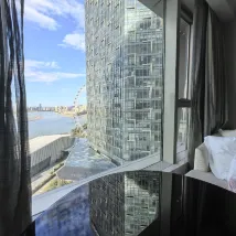 강 전망이 아닌 객실은 예약하지 마세요. 공사 현장, 벽, 그리고 다른 사람들이 설치한 거위 지붕 에어컨만 보일 겁니다. 조명은 어둡고, 책상 스탠드는 누렇고 어두워서 출장 중 업무를 해야 하는 사람들에게는 적합하지 않습니다.