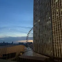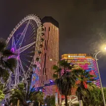 진강이 앞에 있고 밤에는 대관람차가 있습니다.